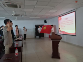 大会第六项,党旗下讲话。党委邓秀成书记进行了讲话。书记先为我们讲述了中国共产党的奋斗史,为我们讲述了优秀党员同志全心全意为人民服务的事迹,特别是在疫情防控工作中涌现出来的优秀共产党员事迹。最后对党员同志们提出几点要求:要求党员要在在工作、学习、生活中要创先争优,充分发挥先锋模范带头作用,进一步坚定理想信念,树立正确人生目标。
