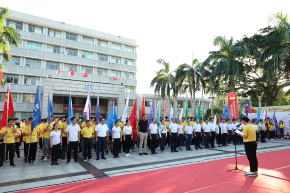 启动仪式在海甸校区办公楼广场举行。伴随着庄严的国歌声,启动仪式正式拉开帷幕。全体师生着装统一,气宇轩昂齐唱国歌。在梁谋发出坚定有力的出发令声后,号手吹响了嘹亮的冲锋号,队伍整齐地从起点草坪出发,按照计划路线在校内徒步行进。