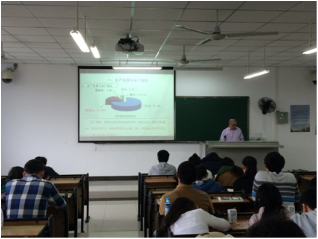 史贤明教授先重点介绍了“食品安全学”的概念,让同学们对食品安全学有了大概的了解,又继续介绍食品安全学的发展概况,逐步引导学生进入《食品安全学》课程的学习。在后续的课程学习中,史贤明教授对食品生产的产前(农作物、农业动物和食用微生物的生产)、产中(食品加工制造)和产后(食品贮藏、流通和消费)的食品安全问题进行系统和全面的论述,其内容既包括食源性疾病爆发、食源性恐怖活动和食物中毒等急性突发事件,又包括食源性危害物的致畸、致突变和致癌(“三致”)等慢性效应。此外,还要对本学科的研究热点、研究动态和发展趋势加以讨论,这些内容包括致病微生物的分子生态学与食源性疾病暴发的机理以及预警和应急技术;生物和理化污染物在食物链上的传递规律与风险性评估以及快速检测和控制技术;食源性恐怖活动的防患和应急技术体系;新资源食品和新技术食品(如转基因食品)的安全性评价;安全食品生产规范、标准化技术体系;食品安全信息网络体系和食品市场准入制的支撑技术体系以及用于国际贸易绿色壁垒的技术体系。通过本课程的讲授,使学生掌握学科的基本知识和技术的基本原理,了解学科的发展前沿,为学生在相关领域进一步的深造和工作打下良好的基础。章超桦教授和李来好副所长在此基础上针对水产品安全问题做了进一步的阐述,加深了学生对水产品生产和加工安全问题的认识。