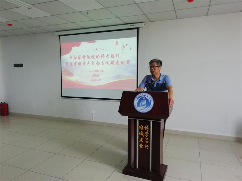 学子翘首以盼,教师满怀期待。在学校统一安排部署、学院精心准备下,5月20日韦德1946体育官方入口迎来了最后一批返校学生。5月21日学院党委书记邓秀成以抗击疫情为题材开讲“开学第一课”,副书记欧少红,全体辅导员以及各班干部六十余人参加。