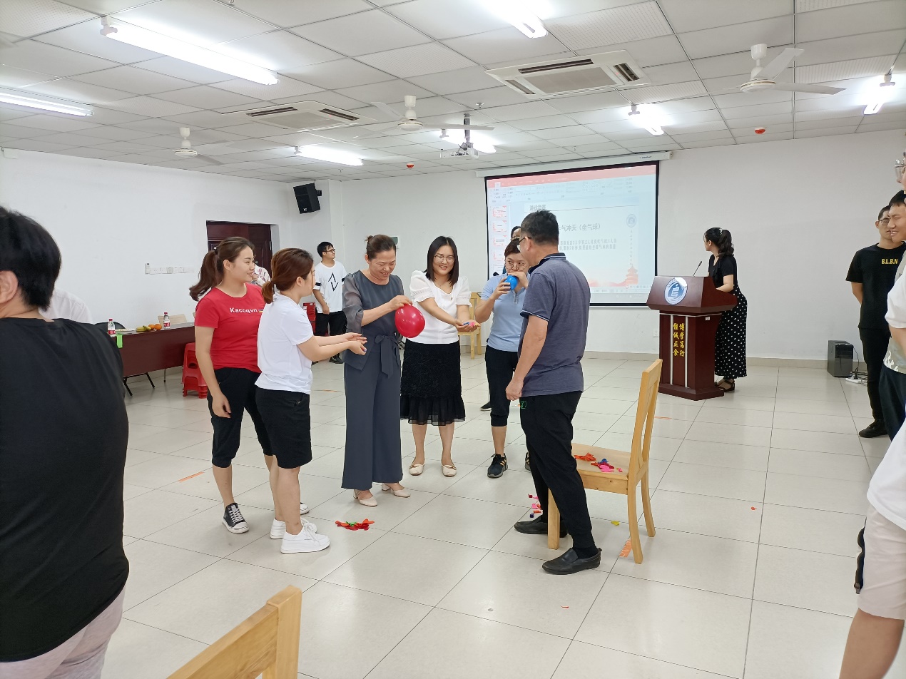 活动在全体教职工合唱“没有共产党就没有新中国”歌曲中拉开帷幕,党史知识问答和团队趣味活动交叉进行。党史知识问答活动中,教职工们积极思考,主动举手抢答,气氛热烈紧张而又愉快放松,“一大会址、中国共产党的最高理想和最终奋斗目标……”等党史知识更加深入人心;趣味活动中,教职工团结协作,斗志昂扬,奋力拼搏,展现了各自的风采,活动现场变成了欢乐的海洋,大家纷纷表示这些活动放松了身心,愉悦了心情,又提升了团队的合作能力。在活动中学院还举行了教职工荣休仪式。仪式上,康丽如、蔡锦红两位老师回顾了自己在学院工作的点点滴滴,表达了对工作的深深眷恋和对学院发展的祝福,现场的同事也纷纷送上了对两位老师的美好祝愿,邓秀成书记代表学院为他们送上了慰问品;在发奖环节,各个参加活动的教职工和团队都欣喜地收到了学院工会为大家准备的奖品,活动也在欢乐的气氛中落下了帷幕。