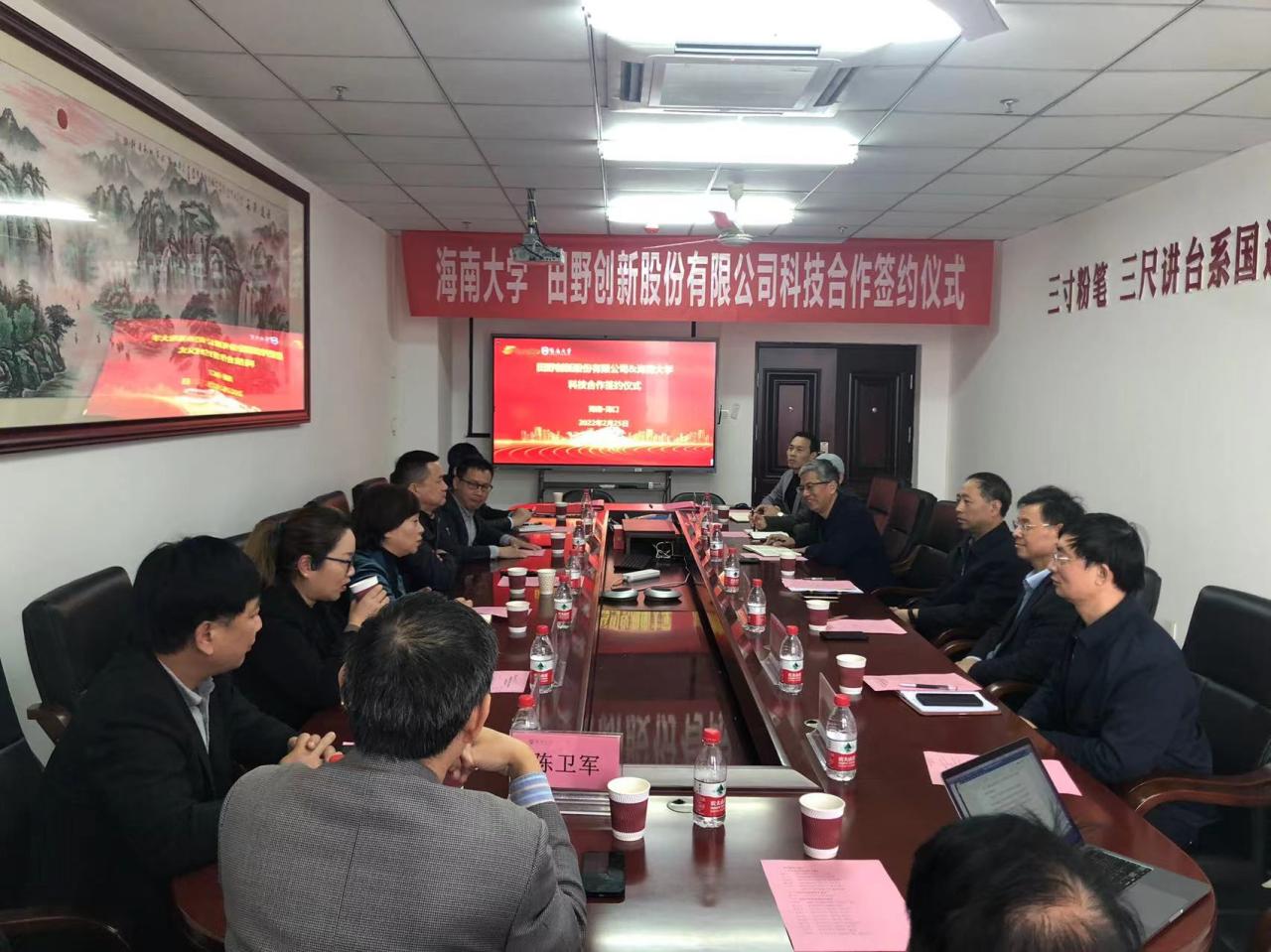 2022年2月25日下午,韦德1946体育官方入口与田野创新股份有限公司在韦德1946体育官方入口研发楼举行科技合作洽谈会暨合作签约仪式。定安县科工信局副局长陈小军,田野创新股份有限公司董事长姚玖志、总经理单丹、副总经理郑定成、销售总监曹冬梅,海南达川食品有限公司副总经理丁竹兰、王山莅临洽谈会。韦德1946体育官方入口科学技术发展院院长邹勇华、韦德1946体育官方入口院长李从发、书记邓秀成等班子成员、研究员陈卫军(项目主持人)及相关系室负责人参加洽谈会。