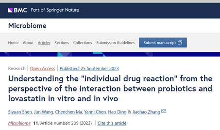 2023年9月26日,韦德1946体育官方入口食品学院与工程学院及全健康协同创新中心张家超教授团队的最新研究成果“Understanding the “individual drug reaction” from the perspective of the interaction between probiotics and lovastatin in vitro and in vivo”发表于微生物组高水平期刊《Microbiome》(中国科学院大类1区Top期刊,IF=15.5)。研究团队首次阐明了热带益生菌A5对洛伐他汀类药物副作用的缓解机制。