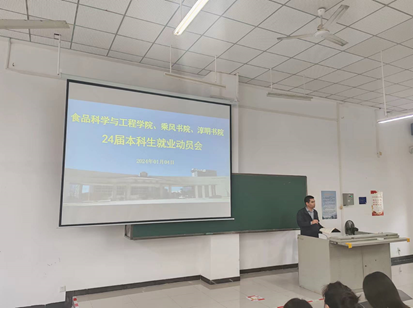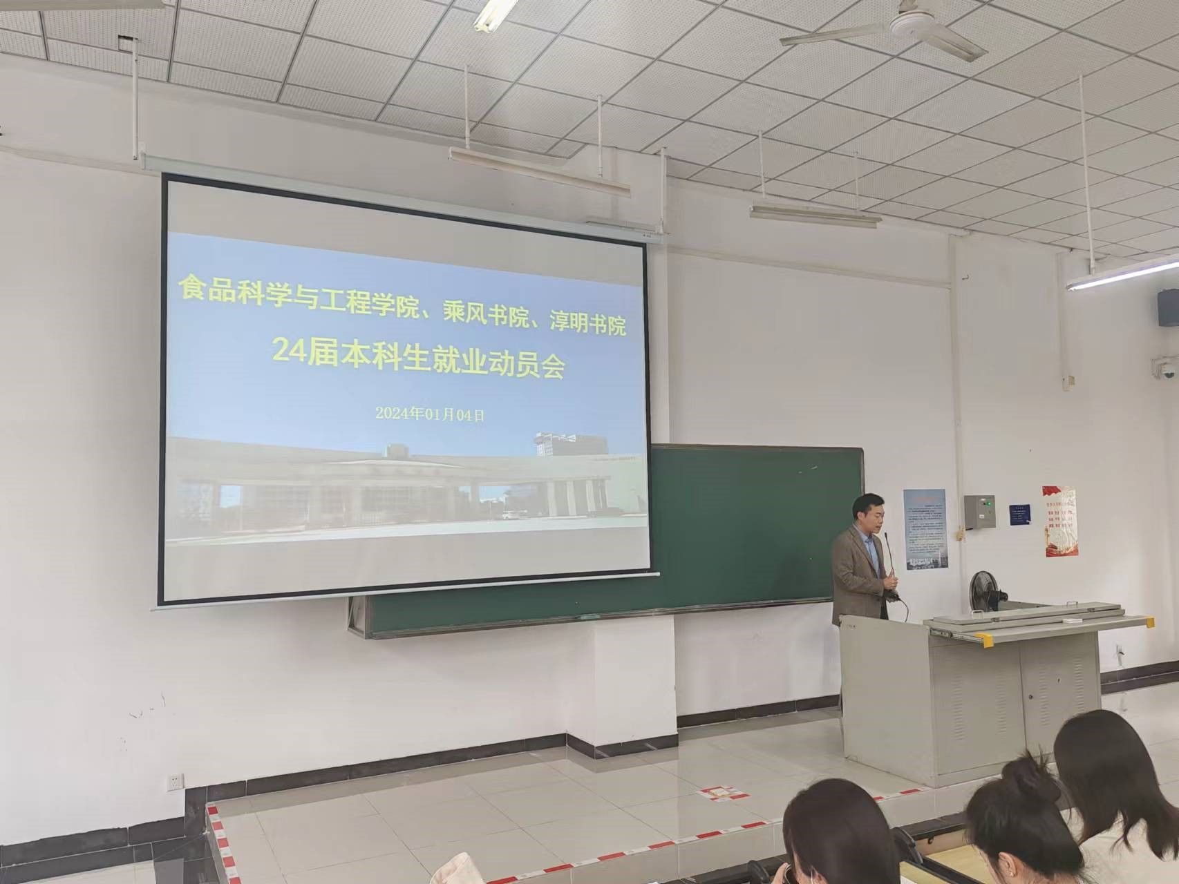 2024年1月4日上午在5教312,韦德1946体育官方入口、乘风书院、淳明书院联合举行2024届食品本科生毕业就业动员会。帮助毕业生梳理毕业事宜,了解毕业生就业意愿,针对性地开展毕业就业教育,更好地为毕业生就业保驾护航。出席会议的有:乘风书院黄小欧书记、淳明书院周郭军书记、韦德1946体育官方入口邓秀成书记、陈文学副院长、李川副院长、系主任、毕业班班主任、辅导员以及食品专业全体本科毕业生。会议由韦德1946体育官方入口食品质量与安全系主任云永欢主持。
