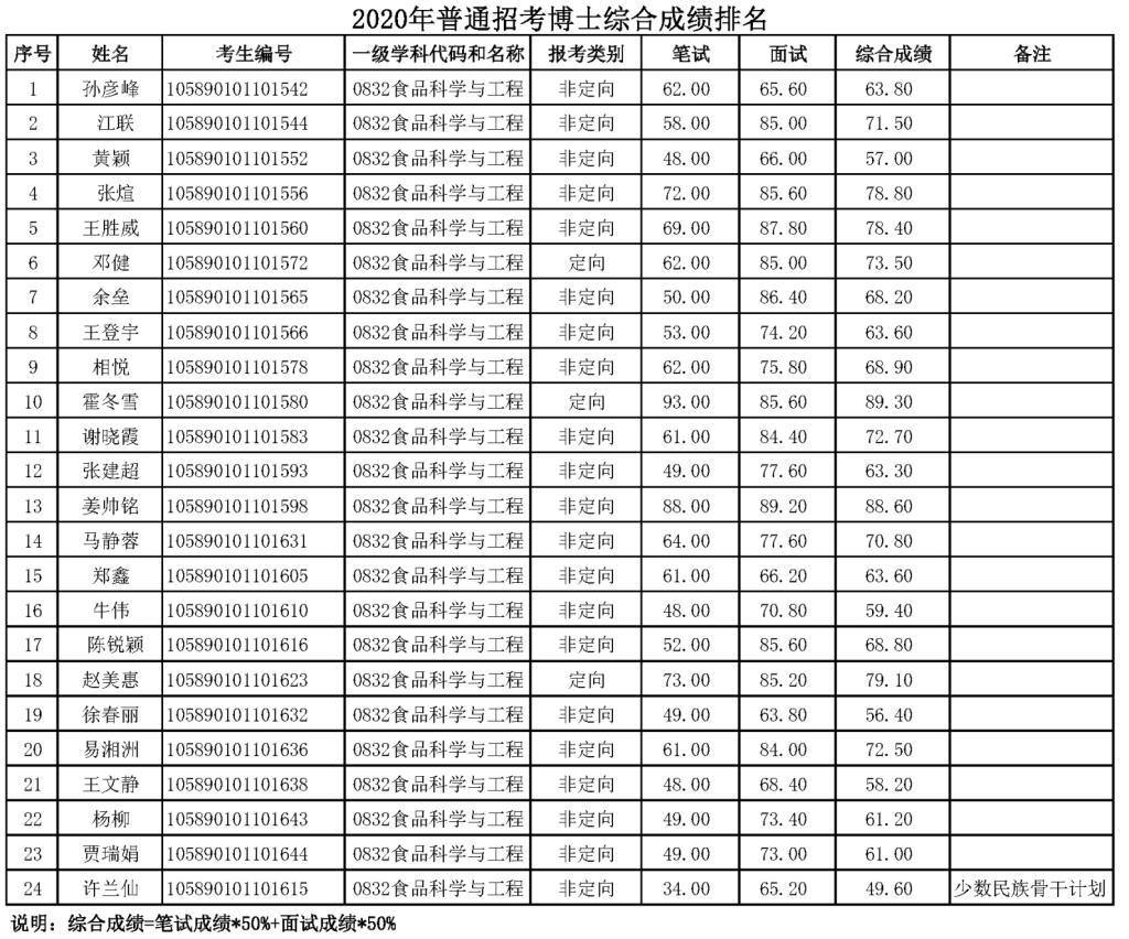 韦德1946体育官方入口2020年博士普通招考综合成绩公示