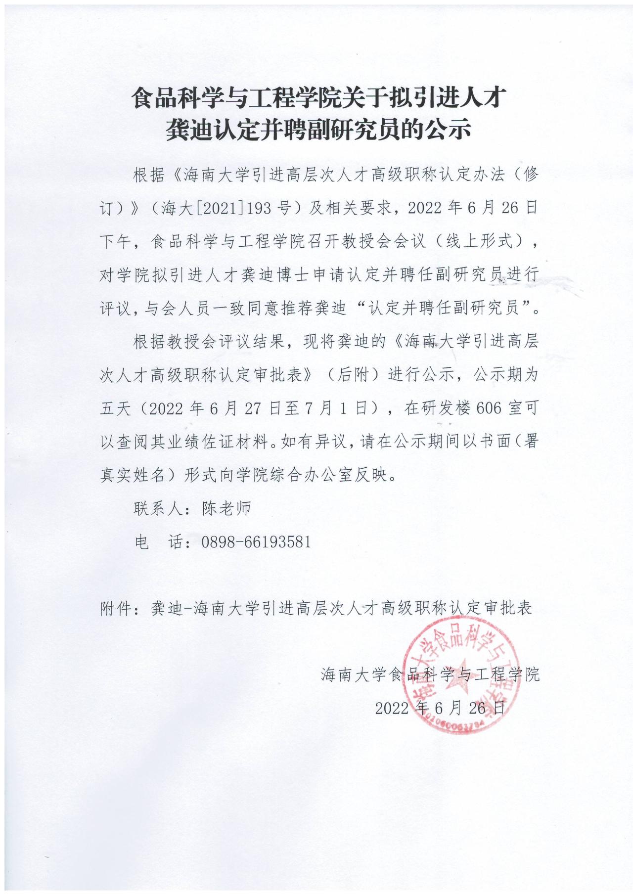 韦德1946体育官方入口关于拟引进人才龚迪认定并聘副研究员公示
