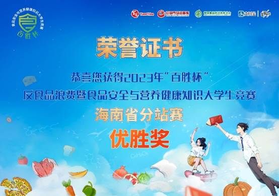 ●答题时间为30分钟;题目共50题,满分100分。完成答题且得分≥60分,可在答题平台获得电子版“2023年‘百胜杯’反食品浪费暨食品安全与营养健康知识大学生竞赛海南省分站赛”优秀奖荣誉证书,需要于2023年11月30日24:00前下载电子证书,过时将无法下载。