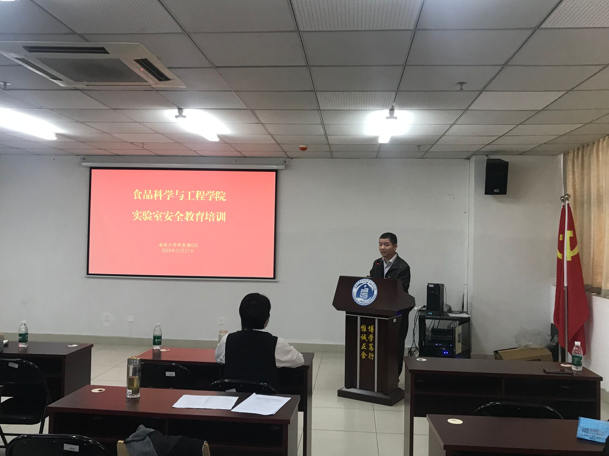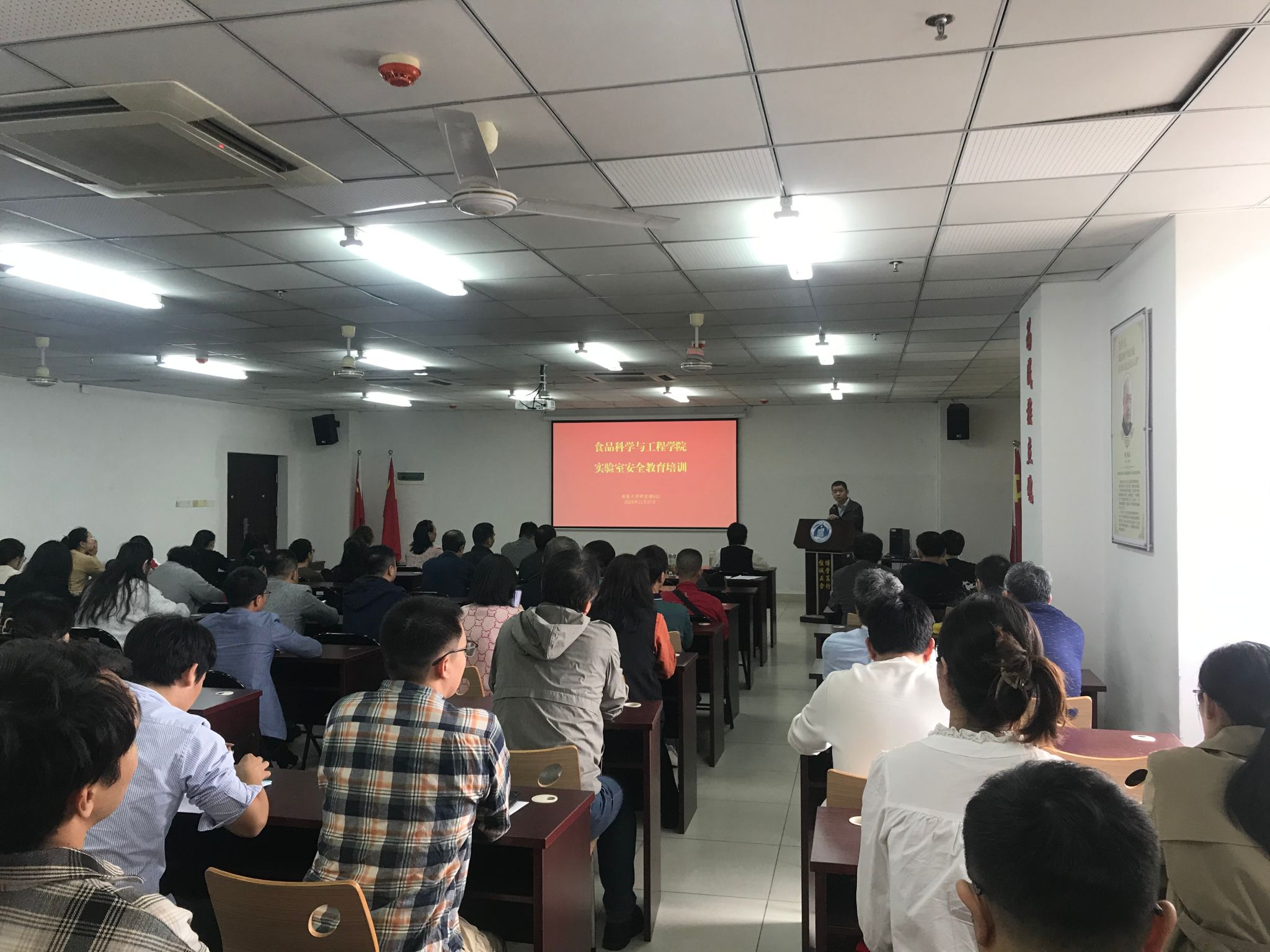 为了落实海大办《韦德1946体育官方入口实验室安全管理工作规程》以及海大党政办〔2024〕17号文件的相关规定和检查要求,食品科学与工程学院根据校实设处“关于组织开展实验室安全教育培训活动的通知”(海大实〔2024)50号)要求,11月27日上午举办了实验室安全教育培训活动,邢红斌书记和于志鹏副院长组织全院教职工观看警示教育片,校实设处杨海峰副处长和陈秀莲科长亲临现场指导,学院实验中心向东主任对存在的实验室风险和问题进行了汇报。本次培训活动进一步厘清了学院实验室安全管理存在的短板,要求各实验室加强和落实实验室安全管理责任,增强了全院教职工师生安全意识。